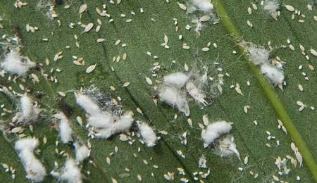 Mealybugs protect themselves from most pesticides by secreting waxy mealy white powder that repels water and sprays (this mealy secretion is where they get their name from). Mealybugs are sometimes confused with other pests that produce mealiness, honeydew, and black sooty mold, including the cottony cushion scale, woolly aphids, and even some soft scales and whiteflies. Be sure to carefully examine the insect beneath the mealiness to identify it properly[2].