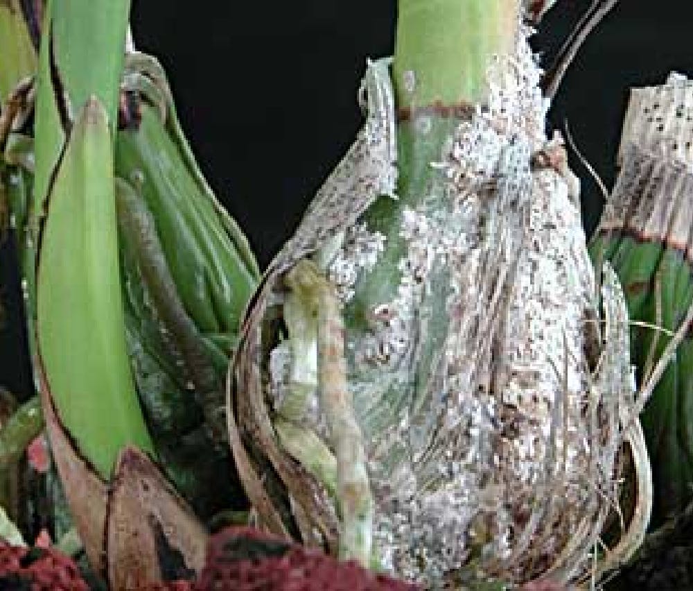 Some of the more effective insecticides available to home growers are Orthene (wettable powder), Malathion (liquid), Diazinon (liquid) and Carbaryl (water-based emulsifiable concentrate). Always follow label directions and never exceed the minimum recommended concentration given in mixing directions. Orchids are tough, but sensitive to many chemicals. While certain species may not react to a given formulation, others might, so advance testing is advised.