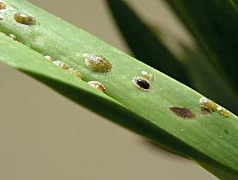 Fortunately, only the most common soft scale, usually referred to as brown scale or brown soft scale, regularly survives in the north on indoor or greenhouse plants. The soft brown scale (Coccus hesperidium), and possibly the similar elongate soft scale (Coccus longulus), seem to be the most observed species. Boisduval scale (Diaspis boisduvali), an armored scale, can infect orchids in the greenhouse and the home, and should be guarded against. The adult brown scale is recognized by light yellowish to dark brown oval to circular shells appearing on leaves, petals, sepals, petioles, pseudobulbs, and sometimes rhizomes and roots. Mature female Boisduval scale are rounded and lightcolored, while aggregations of males are identified by their cottony appearance, which may cause them to be confused with mealybugs if not examined closely. The immatures, or crawlers, of all species are tiny and yellowish to pinkish, and not easily seen without a magnifier.