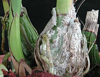 Extreme infestation, scale may develop on roots and rhizomes. Consider replacing the potting medium, which can harbor eggs and crawlers. Dispose of it in a compost pile or in the garbage. When repotting, a close inspection, and, if necessary, a gentle clearing and spraying of the roots is essential.