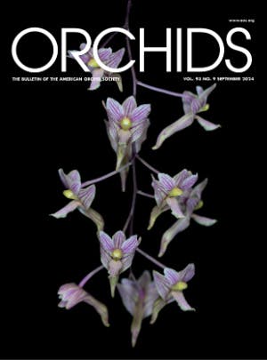 [1] Dendrobium arcuatum ‘Myra’ CBR/AOS grown by Jordan Hawley. photograph from the AOS award archives.