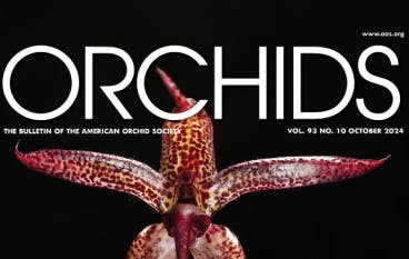 — Sue Bottom started growing orchids in Houston in the mid–1990s after her husband Terry built her first greenhouse. They settled into St. Augustine, Florida, Sue with her orchids and Terry with his camera and are active in the St. Augustine Orchid Society, maintaining the Society’s website and publishing its monthly newsletter. Sue is also a member of the AOS Editorial Board (email: sbottom15@ gmail.com).