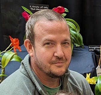 Stephen began growing orchid in 2015 while living in London. This primarily involved taking home and caring for the phalaenopsis orchids from the office reception area once the flowers had fallen off. He promptly joined the Houston Orchid Society upon returning to Houston in 2016 and now grows many different orchid genera. He seems to have the most success with paphiopedilum, catasetinae, and more recently habenaria, phragmipediums, and bulbophyllums. He served as the Newcomers Chair for the HOS for 2018 and 2019, during which time he organized monthly culture meetings for society newcomers. Stephen currently serves as the HOS Speaker VP for 2022 and will continue in this role for 2023. Stephen joined the American Orchid Society in 2019 and has won 4 AOS awards for his orchids.
