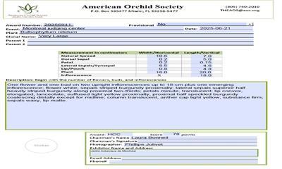 Plant was awarded HCC, SITF was requested by Laura Newton because previous CHM was never identified. Plant was not in flower when SITF information was recorded, one passed flower allowed to take inflorescence and bract measurements. Flower measurements were taken at the time the award was granted. column and anther cap information are missing but column can be slightly seen on one of the picture.