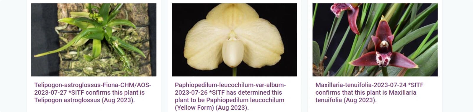 The task force consists of a small group of dedicated volunteers and staff, under the supervision of the Judging Committee, with access to significant reference materials and taxonomic keys. Under most circumstances, a determination can be made using documented references but the SITF also relies on input from respected taxonomic authorities world wide including, but not limited to, Central and South American experts Eric Hágsater, Franco Pupulin and coworkers, Adam Karremans, Mario Blanco, German Carnivali and Francisco Miranda; Henrik Pederson, an expert in European terrestrials and the flora of Thailand, Jim Cootes from the Philippines, J.J. Vermulen specializing in Bulbophyllinae and the orchids of the Malaya Archipelago, Peter Adams and Phil Spence, Johan Hermans, Phil Cribb, Henry Oakeley and Mark Chase.