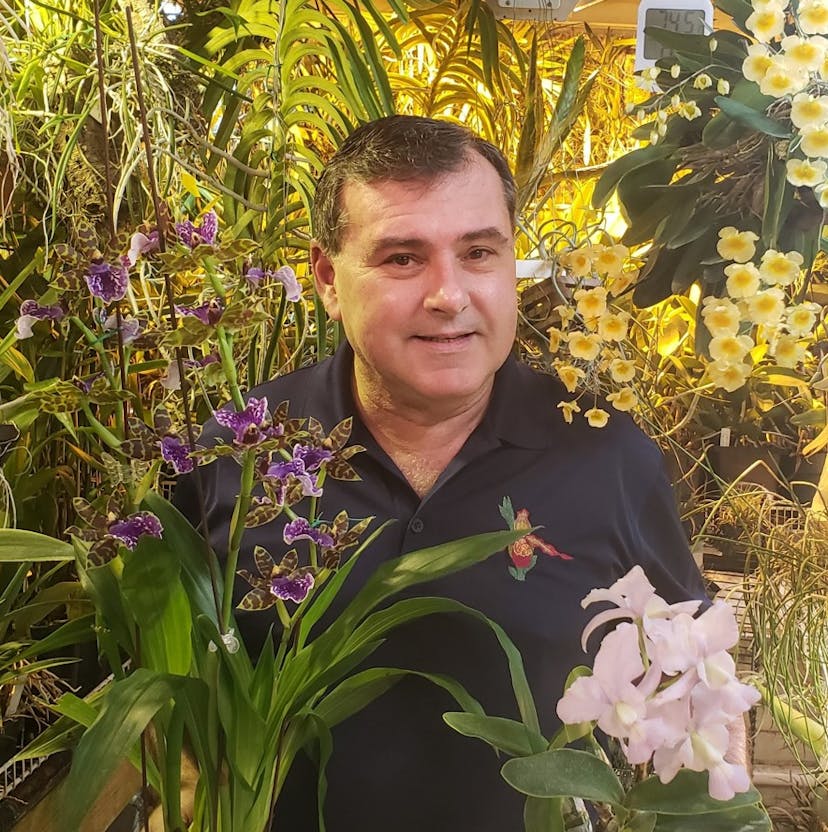 Steve Gonzalez has been growing orchids for over 40 years. He is originally from San Juan, Puerto Rico. He worked with orchids in a local garden center and then gained more experience working with the collection of the Botanical Gardens of the University of Puerto Rico, then to Pennock Gardens a largest wholesale/retail garden center on the Island at that time (i.e. like Bachman’s). After college, he returned to learn to grow orchids beside windows and under fluorescent lights and then under high-pressure sodium lamps in northern hemisphere basement. Most of his plants do grow outdoors in the summer months. Residing in Minnesota provides the opportunity to grow many types of plants which could never be grown in the Caribbean. Most of the plants he enjoys are intermediate temperature growing, which require slightly higher humidity. He has enjoyed exhibiting plants at the local meetings and regional orchid shows. Steve has traveled extensively walking through many orchid habitats and commercial greenhouses around the world. He has enjoyed observing habitat and cultivation of orchids in his native Puerto Rico, Northern Minnesota, Ecuador, Peru, Colombia, Brazil, Venezuela, and throughout Central America. He has also enjoyed visiting many museums and Botanical Centers in this hemisphere and the infamous Kew Royal Botanic Gardens in London.