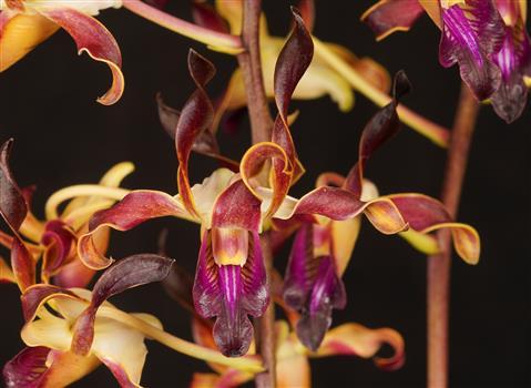 Adams, P. B. and D. M. Calder 1982. Flowering, pollination and culture of Dendrobium speciosum Sm. Journ. Orchid Sp. Soc. Victoria 1:6-11. Adams, P. B. and S. D. Lawson 1987. Pollination of Dendrobium kingianum Bidw. by the honey bee (Apis mellifera). Orchadian 8(12):250-251. Adams, P. B. and S. D. Lawson 1988. Multiple bee pollinators of Dendrobium kingianum Bidw. in the natural habitat. Orchadian 9:103-107. Ando, T. 1982. Experimental taxonomy of the genus Dendrobium Swartz (Orchidaceae). I. Crossability of selected species in the section Eugenanthe Schlechter. Tec. Bull. Fac. Hort. Chiba Univ. 30:1-6. Armstrong, M. 2000. An introduction to the genus Dendrobium. Dendrobium anosmum. Orchid Rev. 108(1235):295-298. Atwood, J. T. 1983. Notes from the Orchid Identification Center: Dendrobium rupicola. Amer. Orchid Soc. Bull. 52:22-23. Atwood, J. T. 1984. The identity of Dendrobium alexandrae. Amer. Orchid Soc. Bull. 53:1178-1179. Auitrakul, R. 1961. The study of the relationship between sections in the genus Dendrobium from pollen germination. J. Nat. Res. Council, Thailand 2(3):37-47. Averyanov, L. V. and D. D. Huyen 1989. Rare species of the genus Dendrobium (Orchidaceae) in Vietnamese flora. Bot. Journ. (St. Petersburg) 74:1667-1668. Banks, D. P. 1996. The genus Dockrillia, the pros and cons. Orchadian 12(2):61. Banks, D. P. and S. C. Clemensha 1990. Dendrobium speciosum: a review of the species. Australian Orchid Rev. 55(6):4-14. Banks, D. P. and S. C. Clemensha 1991. Dendrobium speciosum: a review of the species. Australian Orchid Rev. 56(1):16. Banks, D. P. and D. I. Smedley 1997. Dendrobium lawesii, its history and notes on cultivation. Orchadian 12(4):152-155. Bartareau, T. 1994. The reproductive ecology of Dendrobium toressae (Bailey) Dockr., a geographically restricted species in north-east Queensland. Orchadian 11:106-112. Bartareau, T. 1995. Pollination and breeding systems in varieties of Dendrobium canaliculatum and their implications on the taxonomic status of the group. Orchadian 11:381-387. Bartareau, T. 1995. Pollination limitation, costs of capsule production and the capsule-to-flower ration in Dendrobium monophyllum F. Muell. (Orchidaceae). Australian J. Ecol. 20:257-265. Bartareau, T. 1999. Some observations on the pollination of Dockrillia nugentii in northeastern Queensland. Orchadian 12(11):497-501. Bertoldo, J. and I. Leighton 1991. A new natural hybrid from North Queensland. Orchadian 10(3):85-86. Betts, J. J. 1979. The rediscovery of Dendrobium convolutum Rolfe. Orchadian 6(6):134-135. Blake, S. T. 1964. Dendrobium bigibbum, D. phalaenopsis and the Cooktown orchids. Proc. Roy. Soc. Qnsld. 74(4):29-44. Bock, I. 1997. Dendrobium rigidum R. Br. 1810 [3]. Die Orchidee 48(3): Orchideenkartei Seite 855-856. Braem, G. J. 1990. Dendrobium sophronitis, an endless confusion. Schlechteriana 3/90:98-101. Cady, L. 1964. A new species of Dendrobium for NSW, Dendrobium suffusum. Orchadian 1:80-81. Calder, D. M. and A. T. Slater 1985. The stigma of Dendrobium speciosum Sm. (Orchidaceae), a new stigma type comprising detached cells within a mucilaginous matrix. Ann. Bot. 55:297-307. Chadim, V. A. 1982. Dendrobium crispilinguum Cribb, additional notes. Orchadian 7(3):59. Cheng, S. J. and C. Z. Tang 1986. A new Dendrobium (Orchidaceae) found in China. Orchid Digest 50:95-97. Cheng, S. J. and C. Z. Tang 1987. Dendrobiums new to China. Wild Orchid J. 4:82-84. Chowdhury, S. 1988. A new species of Dendrobium (Orchidaceae) from Assam, India. Kew Bull. 43(4):667-669. Clements, M. A. and D. L. Jones 1990. Recently named Australian orchid taxa, 1: Dendrobium. Lindleyana 5(4):233-234. Clements, M. A. and D. L. Jones 1996. A checklist of the genus Dockrillia. Orchadian 12(2):60. Clements, M. A. and D. L. Jones 1997. A preliminary taxonomic review of Grastidium Blume and Eriopexis (Schltr.) Brieger (Orchidaceae). Lasianthera 1(2):52-128. Clements, M. A. and D. L. Jones 1997. Cannaeorchis, a new genus of Dendrobiinae (Orchidaceae) for the taxon previously known as Dendrobium Sw. sect. Macrocladium Schltr. Lasianthera 1(3):132-147. Clements, M. A., D. L. Jones and B. P. J. Molloy 1997. Winika, a new monotypic genus for the New Zealand orchid previously known as Dendrobium cunninghamii. Orchadian 12(5):214-219. Clemesha, S. C. 1978. A review of Dendrobium bigibbum Lindl. Orchadian 6(2):27-33. Clemesha, S. C. 1981. A review of Dendrobium speciosum Sm. Orchadian 6(11):246-###. Clemesha, S. C. 1981. Dendrobium speciosum var. bancroftianum Reichb.f. Orchadian 6(12):271-272. Clemesha, S. C. 1982. A natural hybrid in Dendrobium from North Queensland. Orchadian 7(4):91-92. Clemesha, S. C. 1982. A new variety of Dendrobium speciosum Sm. from Central Queensland. Orchadian 7(5):103-106. Clemesha, S. C. 1983. A note on Dendrobium bigibbum var. compactum. Australian Orchid Rev. 48(3):181. Clemesha, S. C. 1986. Dendrobium speciosum, an update. Orchadian 8(8):173-177. Comber, J. B. 1981. Dendrobium pedilonum in Java. Orchid Digest 45:72-76. Comber, J. B. 1983. The section Calcarifera of the genus Dendrobium in Java. Orchid Digest 47:191-196. Comber, J. B. and J. J. Wood 1999. Dendrobium ayubii from Sumatra. Orchid Review 107(1226):89-91. Cootes, J. 1998. Dendrobium section Formosae as represented in the Philippines. Orchids Austral. 10(4):34-38. Cribb, P. J. 1980. Three new species of Dendrobium section Ceratobium from Papua New Guinea. Orchadian 6(8):174-178. Cribb, P. J. 1981. A preliminary key to Dendrobium sect. Latouria. Orchadian 6(12):277-283. Cribb, P. J. 1982. Dendrobium section Ceratobium in the Pacific Islands. Orchadian 7(5):119-120. Cribb, P. J. 1982. The true affinities of Dendrobium bairdianum F. M. Bail. Orchadian 7(6):140. Cribb, P. J. 1983. Dendrobium sect. Spatulata Lindl., the correct name for the “antelope” dendrobiums. Orchadian 7(8):189. Cribb, P.J. 1983. A preliminary key to Dendrobium sect. Spatulata Lindl. (syn. sect. Ceratobium Lindl.) in New Guinea and the Bismarck Archipelago. 