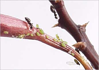 When controlling aphids, mealybugs and scale, one must also eliminate any ants that protect and farm them. Insecticidal sprays are effective against worker ants that transport and protect the other pests. Use this in conjunction with sugar-based ant baits to kill off the rest of the colony.