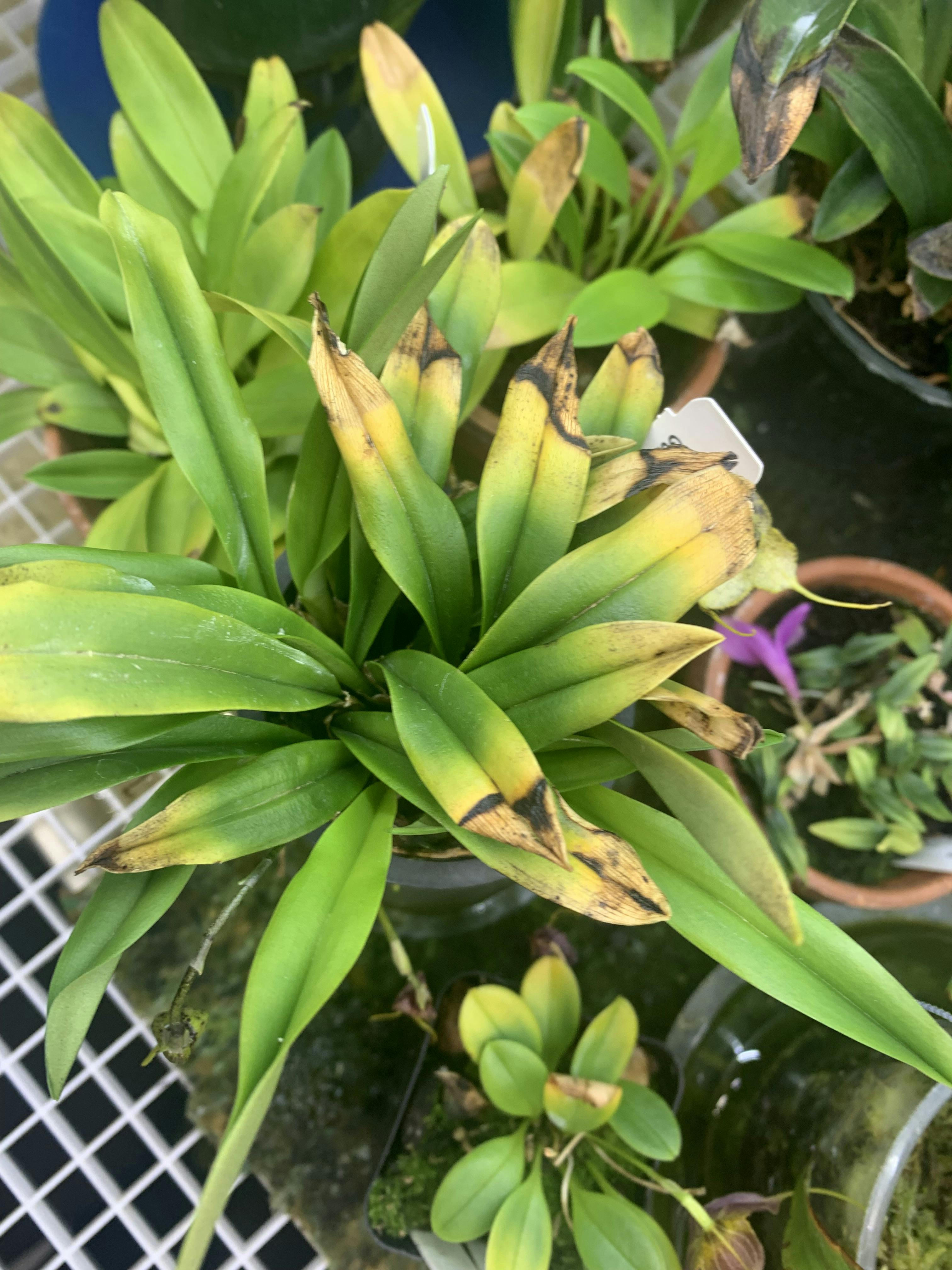 In many cases, leaves will begin to blacken starting at the tips and slowly working their way down the leaves. New growths may be stunted and new roots may stop growing when they touch the potting medium