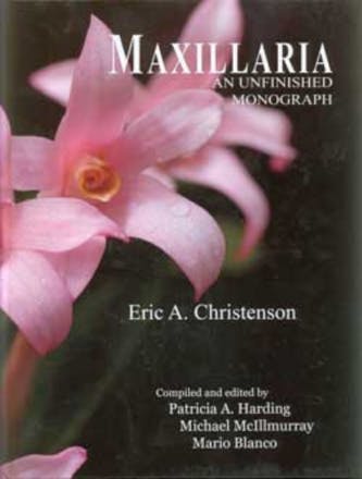 When Eric Christenson died unexpectedly in 2011, he was actively working on a taxonomic revision of Maxillaria, a taxonomically confusing genus of over 600 species. He left a rough manuscript and a large number of files and photographs. Encouraged by Eric’s brother, Patricia Harding undertook the huge task of organizing the information into publishable shape; these two volumes are the result. The text is largely that of Christenson, but with commentary and supplementation (highlighted in blue) by Harding, McIllmurray, and Blanco. McIllmurray curates the UK National Plant Collection® of Maxillarias. He provided line drawings of many species in his collection and sent the illustrations to Christenson for determination; these illustrations are included in the volumes. Mario Blanco is a botanist at the Universidad de Costa Rica with an extensive knowledge of the Maxillaria subtribe; he vetted photos and illustrations against Christenson’s species concepts, checked nomenclature and synonymy and provided valuable commentary.