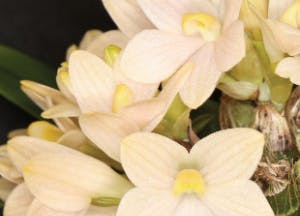 So, what DO I grow with this method? Paphiopedilums and phragmipediums work well. So do most cattleyas (the hybrids in particular). Some of the species of orchids say in cultural descriptions that they do best mounted, so that is a clue they will not do well if they do not drain quickly. There are also many species that like a moist environment. For example, I have a large Dendrochilum wenzelii in my collection that LOVES its 12-inch (30 cm) diameter, 4-inch (10 cm) tall pot that I keep well-watered. Last spring it put out over 100 inflorescences, so I know it is happy. I also have a very large Dendrobium hancockii in a similar pot. I make sure to dry that one out from time to time though, not allow it to remain constantly moist, for best blooming.