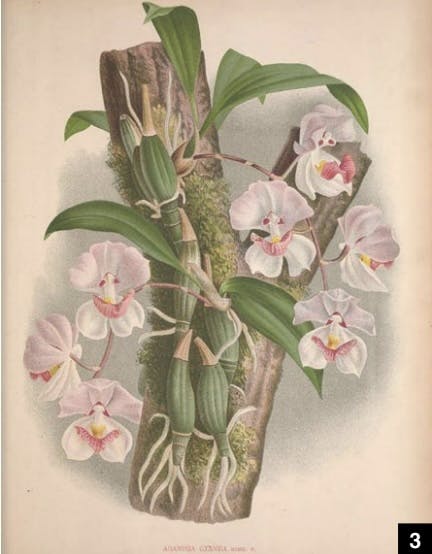 [3] Acacallis cyanea, Plate CL, Lindenia Icon. Des Orchidées, Volume 3, 1887.
