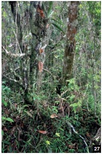 [20] Cynorkis calanthoides growing at the base of the crown of a giant Pandanus in the Ranomafana reserve. It is one of the few true epiphytic members of the genus.