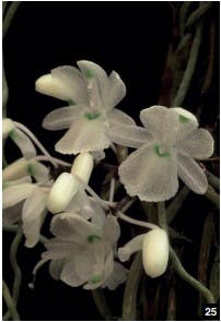 [28] Detail of the flowers of Aeranthes angustidens, in the Ranomafana area of Madagascar.
