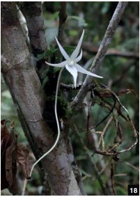 [18] Angraecum ankeranense in the Ranomafana reserve; the spur is about three inches (7.5 cm) long.