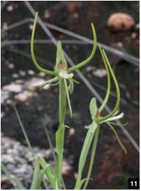 [11] Habenaria cirrhata has some of the biggest flowers in the genus; it is known locally as the bull’s horn orchid.