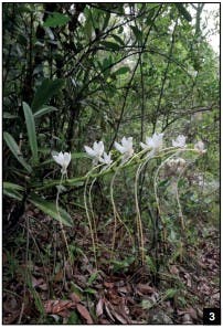 [3] Aerangis ellisii is now rare in its natural habitat, here growing on a rocky hillside in central Madagascar.