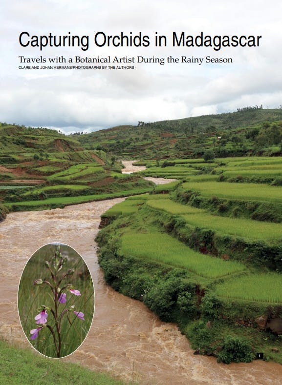 Eighteenth-century explorers often had artists accompanying them on expeditions. Captain James Cook, for example, took Sydney Parkinson and John Webber. They illustrated places, plants and other wildlife during their voyages; their work is still an important permanent record. The invention of photography put an end to the practice. During our last travels to Madagascar, we were fortunate to have the company of one of today’s most talented botanical artists, recording some of the exciting orchids the island has to offer.