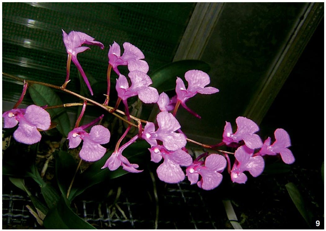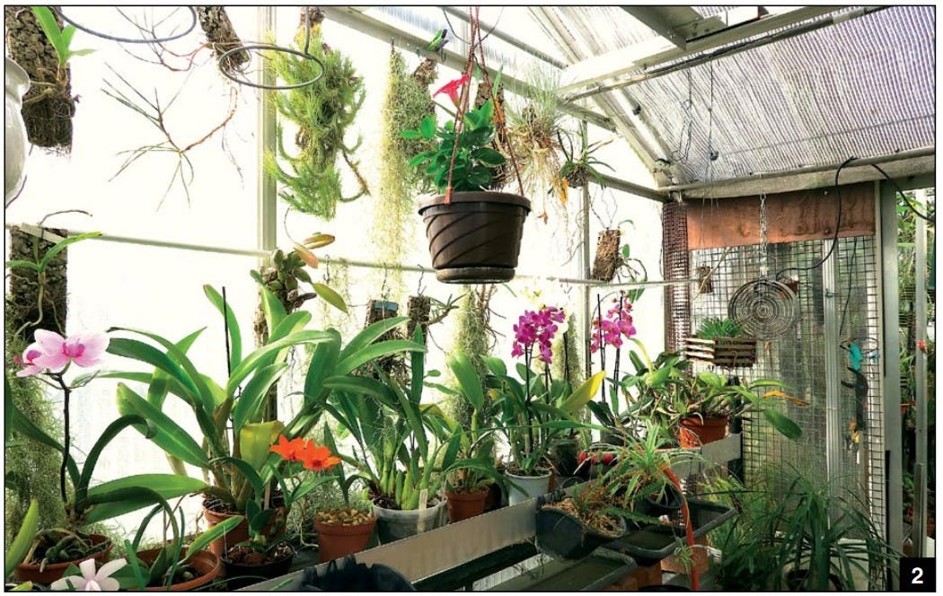 — Gisela Utz has been growing orchids for many years. The photographs included here of her greenhouse and orchid collection are a small sample of the diversity of her collection (email Gisela.Utz@web.de).