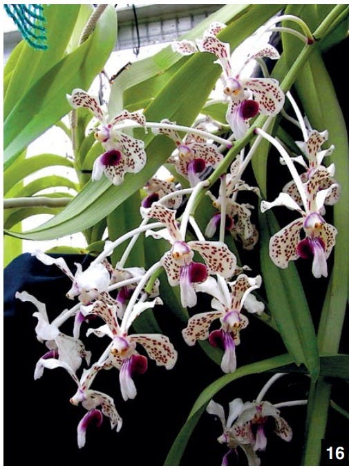 Aerides are monopodial epiphytes that live on trees. Their habitat ranges from Thailand and Myanmar to Laos and Vietnam and into the Philippines. Aerides species are best cultivated in lattice baskets, on cork bark, or on tree fern slabs to give their strong, proliferating aerial roots free space. They need constantly warm, moist and airy growing conditions. In winter, a temperate, not too dry location is sufficient. Happy growing!