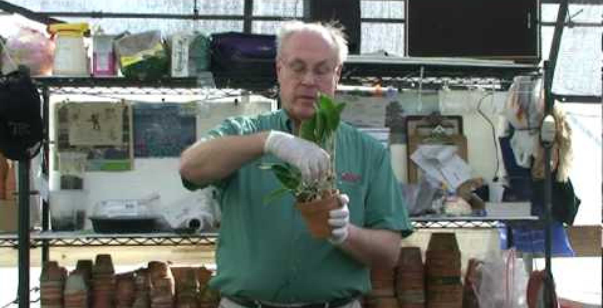 John Stubbings demostrates the most basic potting technique: repotting a sympodial orchid.