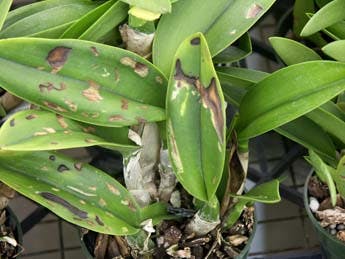 -- Rule out the possibility of chemical damage by checking each chemical used for dosage and compatibility. Make certain that the chemicals used are labeled as safe for orchids, and that the recommended dosage has not been exceeded.
