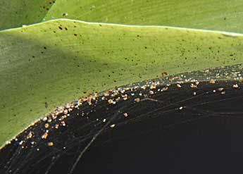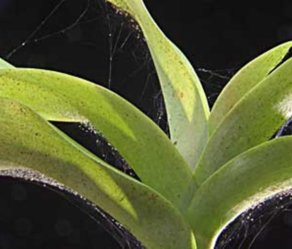 Again, in room temperature or hotter conditions, spider mites can complete a life cycle in as little as five days, and females can lay up to 200 eggs at a time!! This makes them rather problematic, especially at blooming time, or during times of new growth. Spider mites, like any creature, prefer an easy meal, so because they slice open individual cells, spider mites prefer thin-leafed orchids. They are much less common on thicker, more succulent orchids like Cattleya except for the flowers, which are susceptible to all. Spider mites are attracted to bright colors, especially yellow, and gravitate towards the sunniest part of the plant. This may be so that they can ride wind currents better from plant to plant. Spider mites easily can get on your clothes and can hitch a ride – but don’t worry, they do not bite. You might be, however, transferring them from plant to plant, if you have an infestation and don’t shake your shirt out between plants.