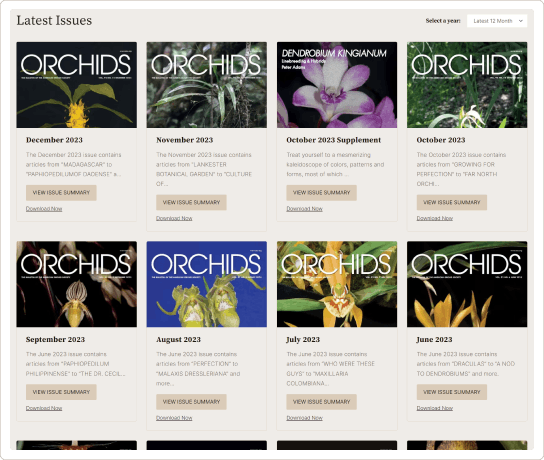 In addition to the regular monthly issues, subscribers receive a special 13th bonus issue each year. This annual supplement dives deep into a specific orchid family or topic. It's a comprehensive exploration that adds even more value to the magazine, providing a detailed look at subjects that capture the broad interests and passions of the orchid community.