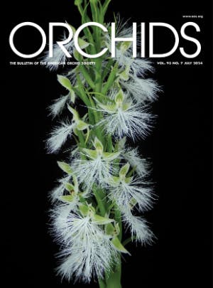 This month's issue features a beautifully illustrated article by Olaf Gruss on the hybrids of Paphiopedilum rungsuriyanum. This relatively new, miniature species from Laos is turning out to be a terrific parent. This issue also features an article by Jim Cootes on selected species in Dendrobium section Dendrobium, the first in a series of articles on the many sections of the genus Dendrobium. Nicholas Rust also treats us to a lavishly illustrated article on Habenaria hybrids and how to grow them. Rounding out our July issues is a detailed article on what orchids need for healthy growth written by Rick Lockwood.