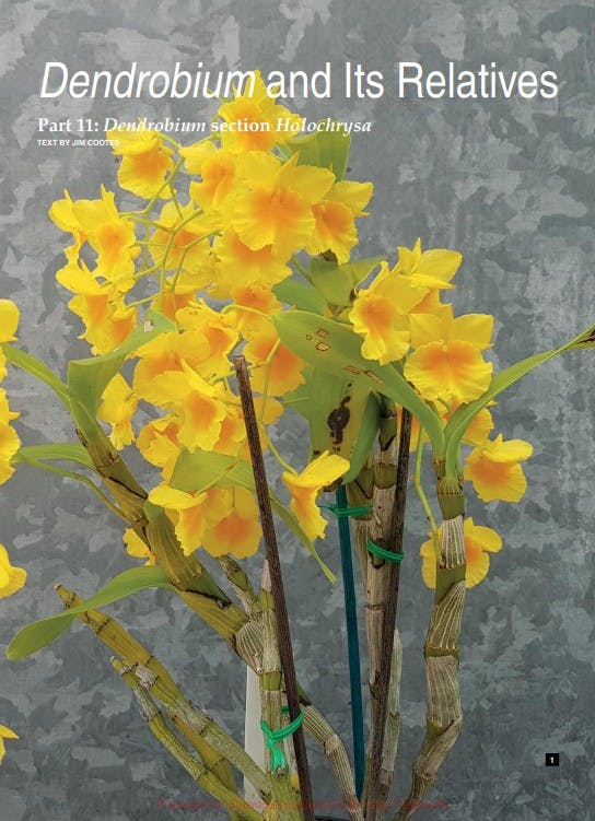 This month brings us the second installment of Juraj Kojš's series on the forms of Cattleya violacea and Leon Glicenstein introduces us to his new hybrid in the genus Galeandra. Jim Cootes coninues his series on the genus Dendrobium with section Holochrysa and rounding out our features, Clare and Johan Hermans tell us about the Deutsche OrchideenGesellschaft's (D.O.G) recent show in Dresden, Germany; the rehearsal for D.O.G.'s hosting of the 24th World Orchid Conference in Dresden in March of 2026. You won't want to miss this WOC or the rich history of this part of Germany.