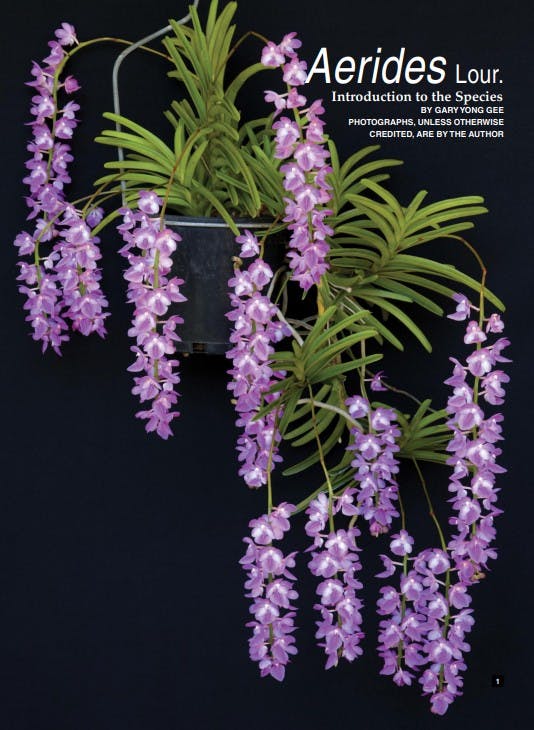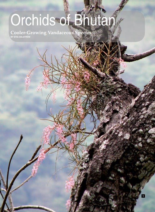 When we think of vandaceous orchids, the natural tendency is to imagine really warm-growing and sun-loving species from the hottest parts of the African and Asian tropics. Although correct, did you know that there are numerous vandaceous species that grow at higher elevations? Many of these species have very attractive, interesting and long-lasting flowers. For orchid growers in colder climates these species may be good substitutes for those who grow under cooler conditions or who grow their orchids on windowsills. Jason Fischer, well-known in Vanda (Neofinetia) falcata circles shares with us this beautiful plant and many of it's hybrids and Ken Jacobsen presents the genus Sarcochilus and how to grow them. Today's sarcos are, in a word, dazzling and if you master their simple requirements, incredible growers and bloomers.More interested in traditional vandaceous genera? Two of the most prominent vandaceous growers in the country - Robert Fuchs and Martin Motes - share their histories in growing and breeding these plants. Bob Fuchs takes us through development of the "dinner-plate" vandaceous and their smaller, brilliantly colored relatives that include former ascocentrums in their backgrounds and Martin Motes brings us up to speed on breeding trends using many of the other species in the genus. How about the more exotic? Perhaps Rhynchostylis, Aerides and Renantheras are more your speed. This supplement covers those too.Don't believe you can grow vandaceous plants in your environment. You don't want to miss two growers who share their inventiveness when it comes to these plants.