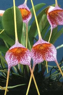 A Central American intermediate grower, Masdevallia nicaraguae has waxy, pink-flushed, white flowers that smell like soap. Masdevallia garciae, from Venezuela, has similarly scented copper-colored blossoms that are striped with dark red. Both of these masdevallias are profuse bloomers and are heat-tolerant.