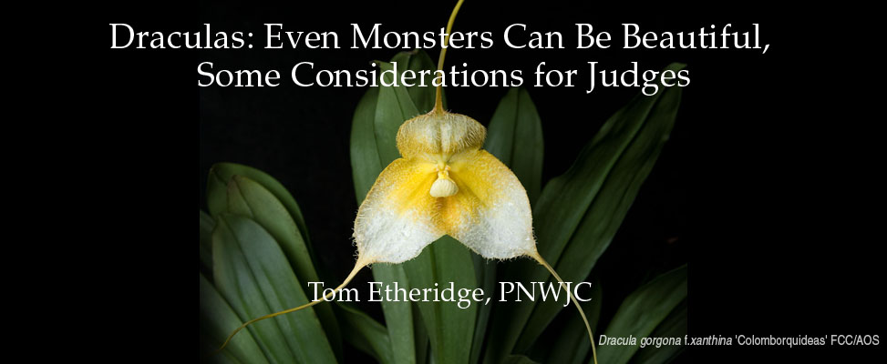 Tom Etheridge is a judge in the Pacific Northwest Judging Center and has been growing orchids for over 40 years. He has an infectious passion for the genus Dracula, and developed this webinar based on over 25 years of growing and exhibiting the species and hybrids of this often-misunderstood genus. After giving a brief summary of the taxonomic history of Dracula, Tom’s presentation addresses the following judging topics: